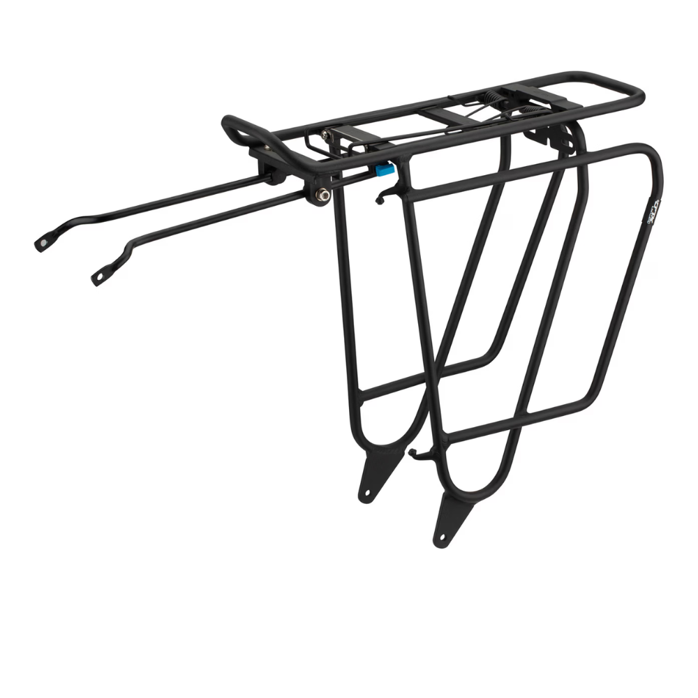 Med aluminiumracket RP-R14 från XLC kan du enkelt transportera upp till 25 kg utrustning – oavsett om du pendlar, är på turné eller handlar med din cykel. De två pannbågarna, som är monterade på sidorna under den stora lagringsytan, är särskilt praktiska för detta ändamål. Där kan du snabbt klämma fast din jacka med fjäderluckan om det blir för varmt när du cyklar. Det är också möjligt att fästa en extra cykelkorg eller kompatibla väskor via Carry More-systemet.